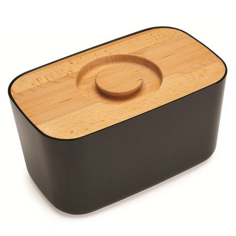 Стильное и современное решение для кухни. Благодаря материалу, из которого изготовлена хлебница, батоны и багеты долго будет оставаться свежими и не впитают в себя посторонние запахи. Кроме того, такую хлебницу из меламина очень легко мыть, этот материал исключает всевозможные трещины и царапины на поверхности изделия. Очень вместительная: поместится несколько батонов хлеба. Крышка из бука - она же доска для резки хлеба, можно смело делать бутерброды прямо на ней.
