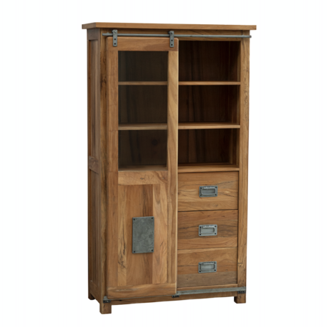Витринный шкаф Рихан: массив акации с амбарной дверью для гостиной и кухни