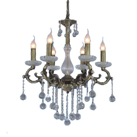 Назначение светильника: для комнаты, Стиль светильника: классика, Материал светильника: металл, хрусталь, Диаметр: 585 мм, Высота: 648 мм, Количество ламп: 6 шт, Тип лампы: накаливания, Мощность: 60 Вт, Патрон: Е14, Пульт ДУ: нет, Цвет арматуры: латунь