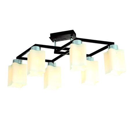 Патрон: Е14, Назначение светильника: для гостиной, Стиль светильника: модерн, Цвет арматуры: хром/венге, Мощность: 40 Вт, Вес брутто: 2 кг, Тип лампы: накаливания, Количество ламп: 6 шт, Тип: потолочная, Высота: 275 мм, Ширина: 350 мм, Материал светильника: металл, дерево, стекло, Пульт ДУ: нет, Длина: 670 мм