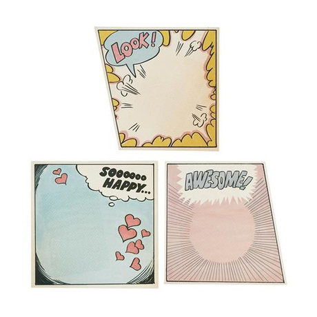 В чём плюсы: В наборе 3 фоторамки разных дизайнов. Идеальны для фотографий формата 10 х 15 см. Выполнены в виде разговорных окон в стиле комикса. Сделаны из плотной бумаги. Такие фоторамки будут прекрасным украшением для детской комнаты.Размер (ВхШхГ): 23 х 19 см.Материал: бумага.