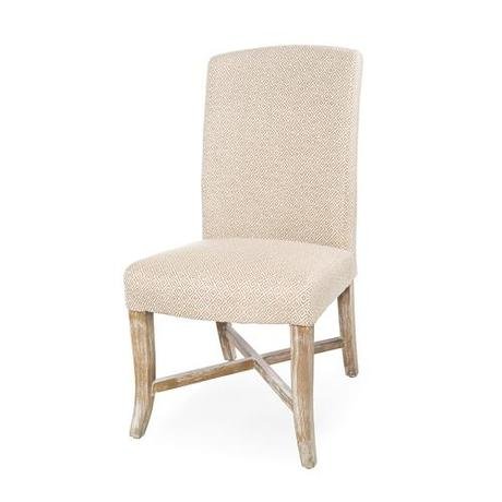 Комфортный и уютный обеденный стул с высокой мягкой спинкой в орнаментальной обивке бело-серого цвета. Модель изготовлена из древесины грецкого ореха и выполнена в светлой отделке.