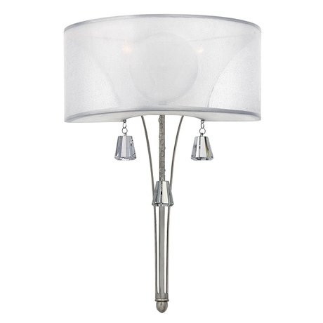 Изящный и элегантный настенный светильник из коллекции Mime. Светильник имеет белый полупрозрачный абажур и украшен хрустальными подвесками. Отделка: матовый никель. Рассчитан на лампочку: 2 x 60W, E14.